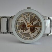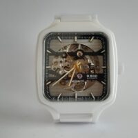REL RADO CERAMICA BLC EXT ESLABON BLC CAJA CUADRADA C/NGR ESQUELETOR LINEAS ORO