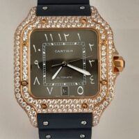 REL SWISS CARTIER SANTOS PIEL ROSA CAJA ORO ROSA FULL DIAMOND 100 XL C/FULL DIAMOND # ROMANOS DAMA AUTOMATICO