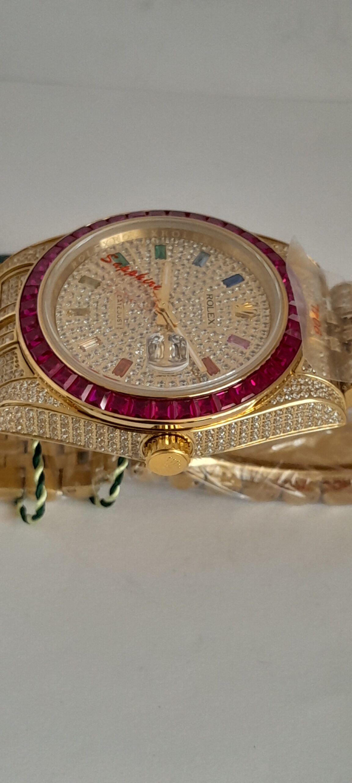 REL SWISS ROLEX DATE JUST ORO FULL DIAMOND BISEL ZAFIRO C/FULL DIAMOND #LINEAS PIEDRAS COLORES, AUTOMATICO.