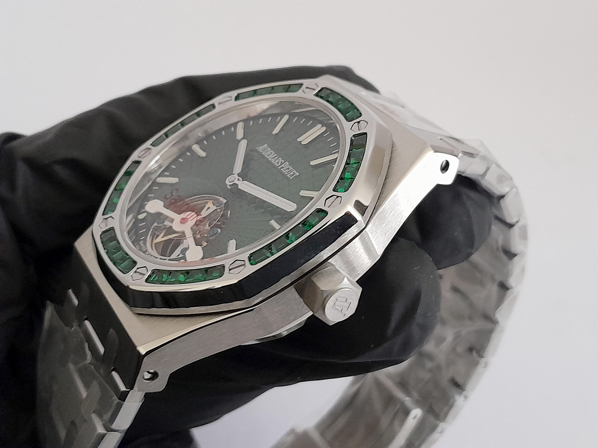 REL AUDEMARS PIGUET ROYAL OAK -ACERO CAJA ACERO- BISEL PIEDRAS BAQUETITAS VERDE C/VERDE TURBILLON