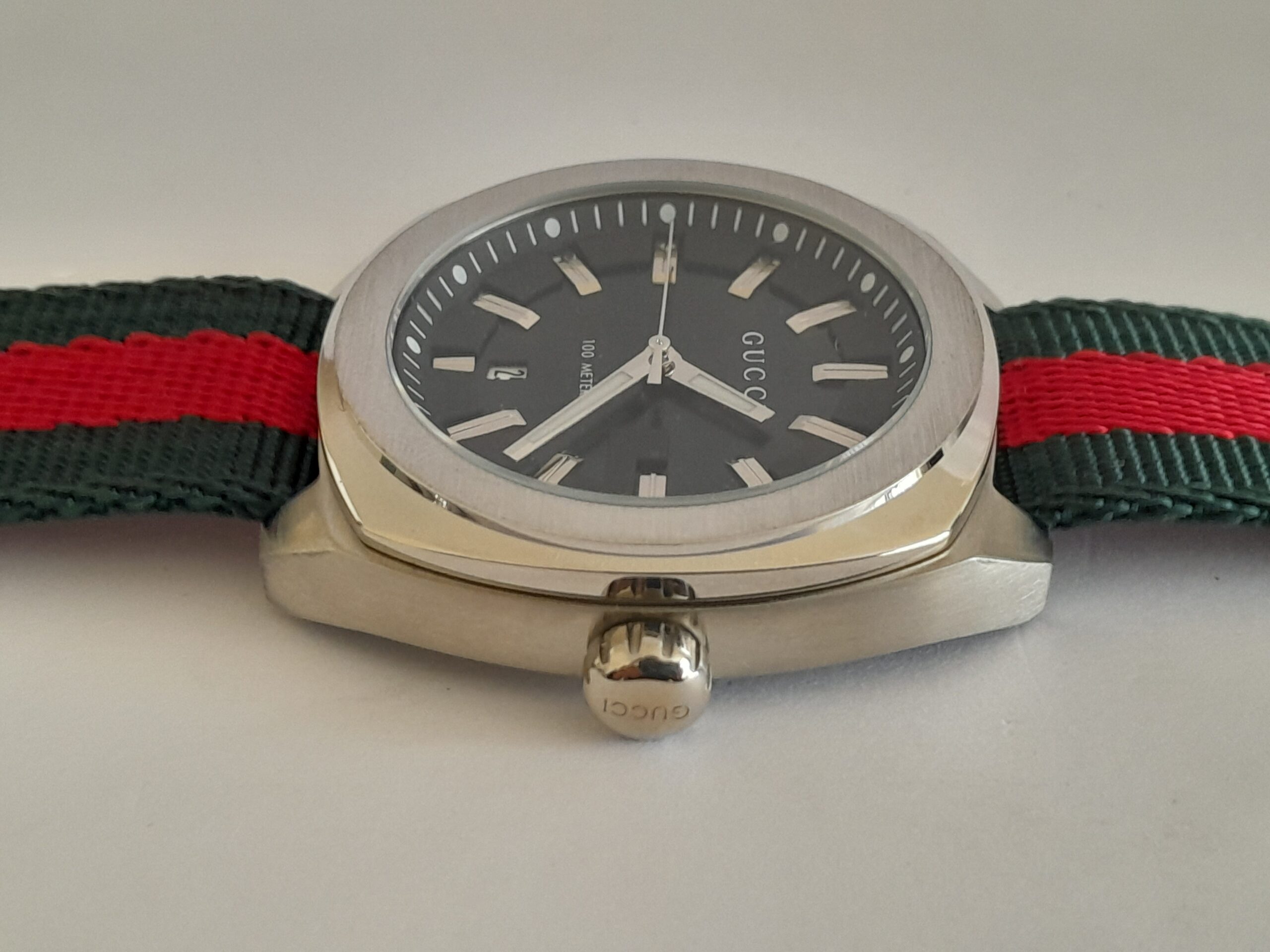 | REL GUCCI TELA VERDE-ROJO CAJA ACERO C/NGR |