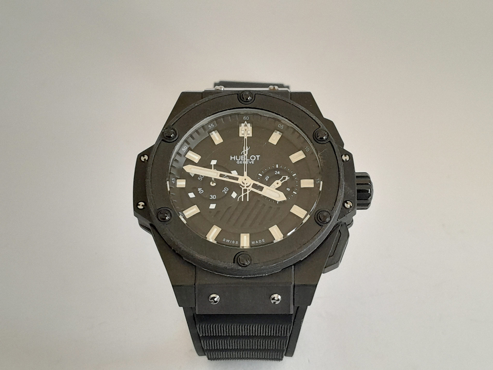 RELOJ HUBLOT CAUCHO GRIS CAJA ACERO BISEL NGR C/GRIS # LINEAS PLT AUTOMATICO