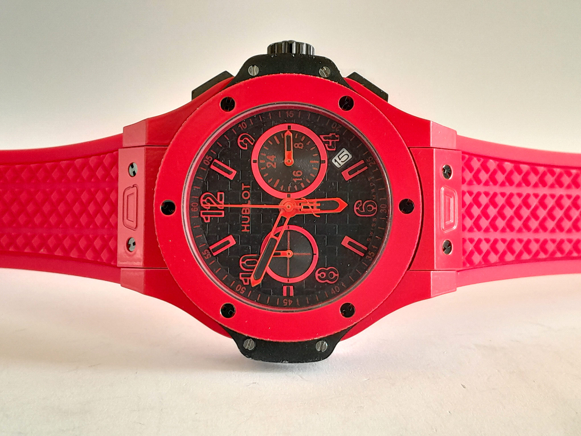 REL HUBLOT CAUCHO ROJO CAJA ROJA BISEL ROJO C/NGR 3 ESF ROJAS # 12-2-4-8-10 ORO CRONOMETRO