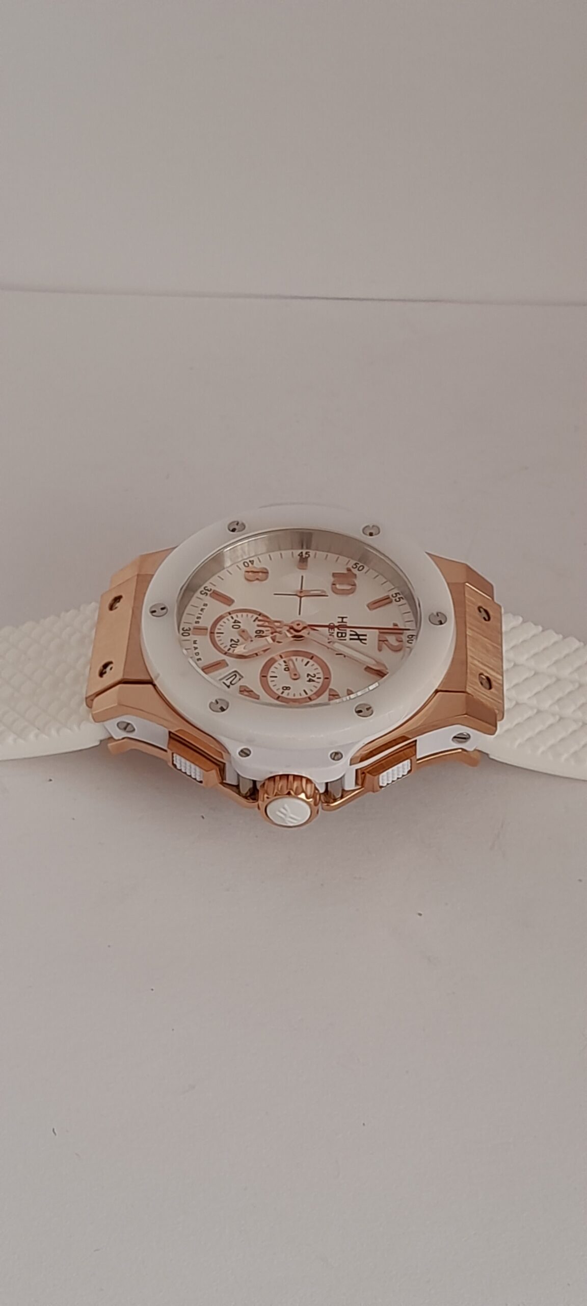 | REL HUBLOT CAUCHO BLC CAJA 44 mm ORO ROSA BISEL CERAMICA BLC C/BLC 3 ESF ORO CRONO # 12-2-4-8-10 ORO CRONOMETRO |