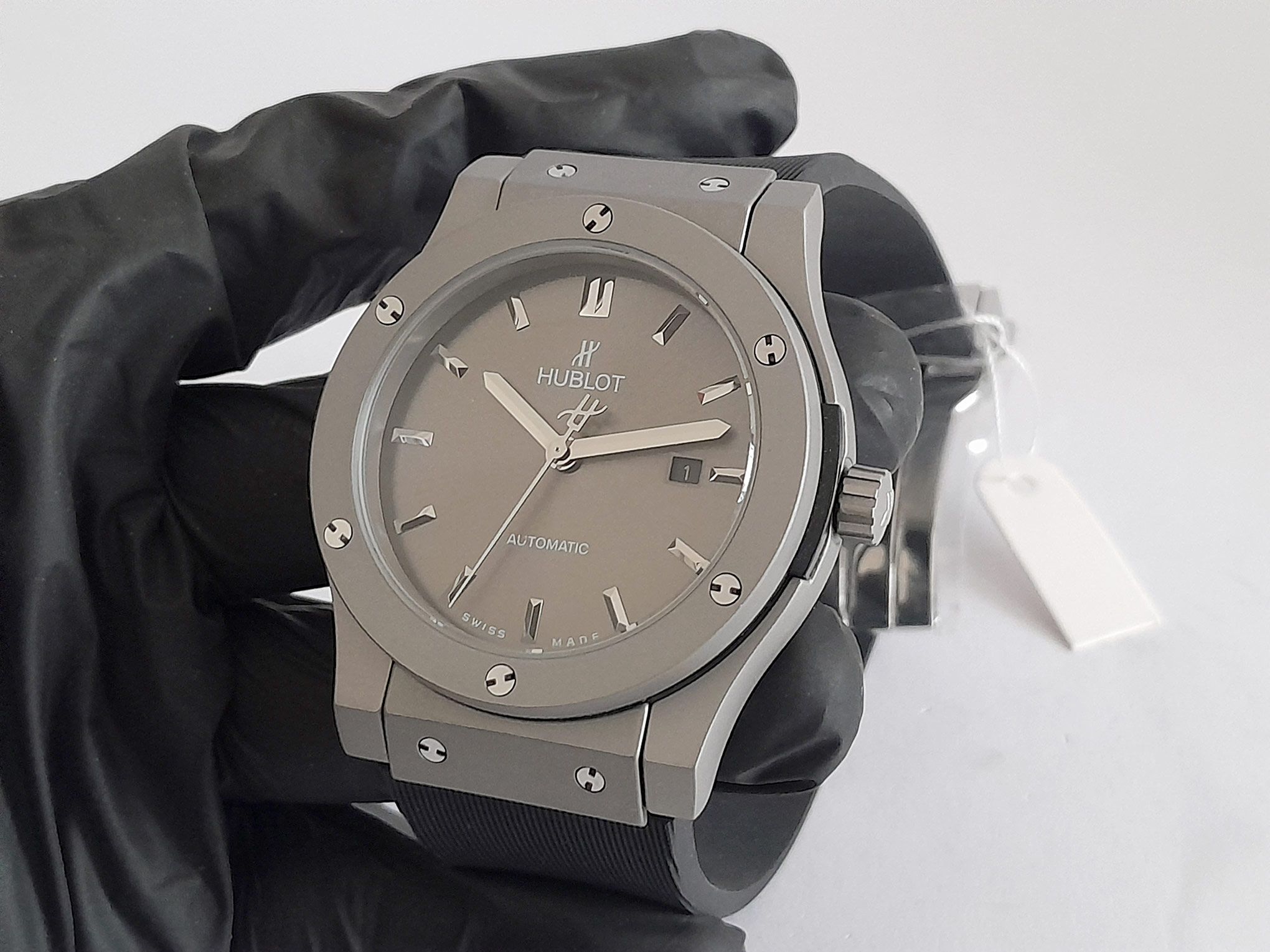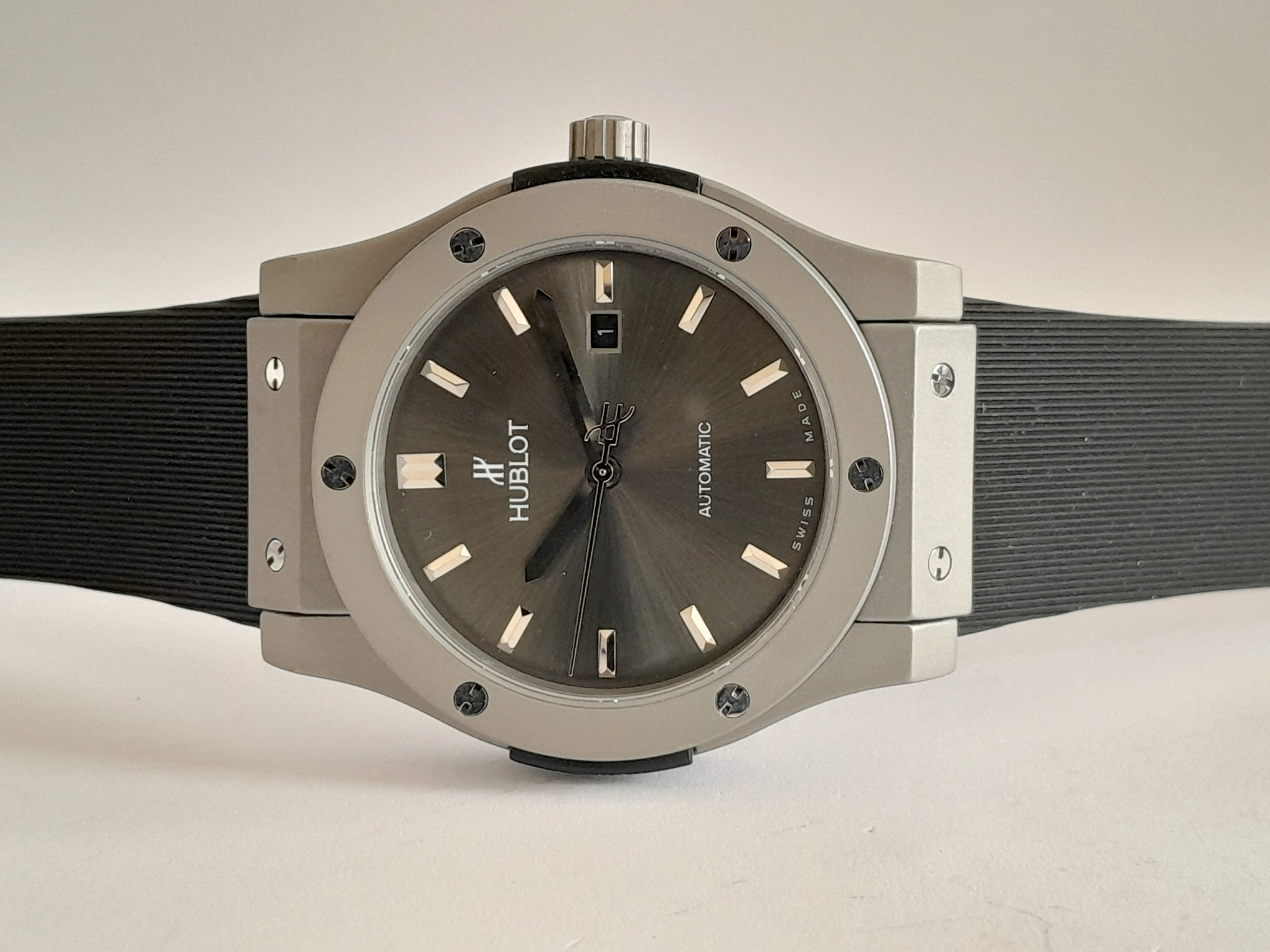 REL HUBLOT FUSSION CAUCHO NGR CAJA TITANIUM BISEL TITANIUM C/GRIS # LINEAS PLT AUTOMATICO