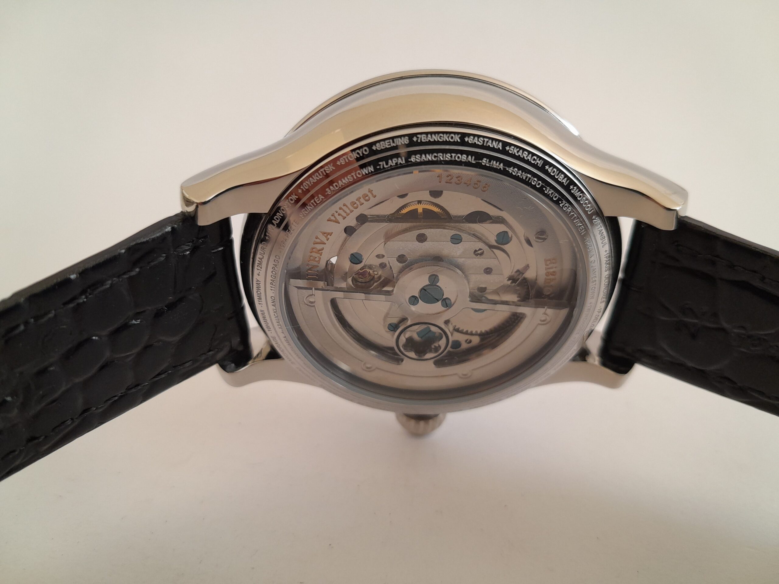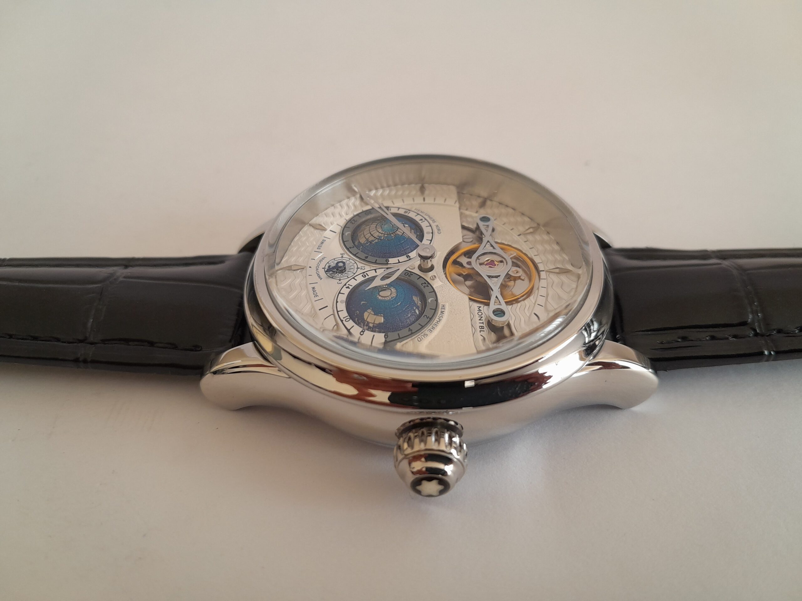 REL MONTBLANC VASCO DA GAMA CAJA ACERO 47mm C/BLC-PLT 2 EMISFERIOS CORREA PIEL NEGRA