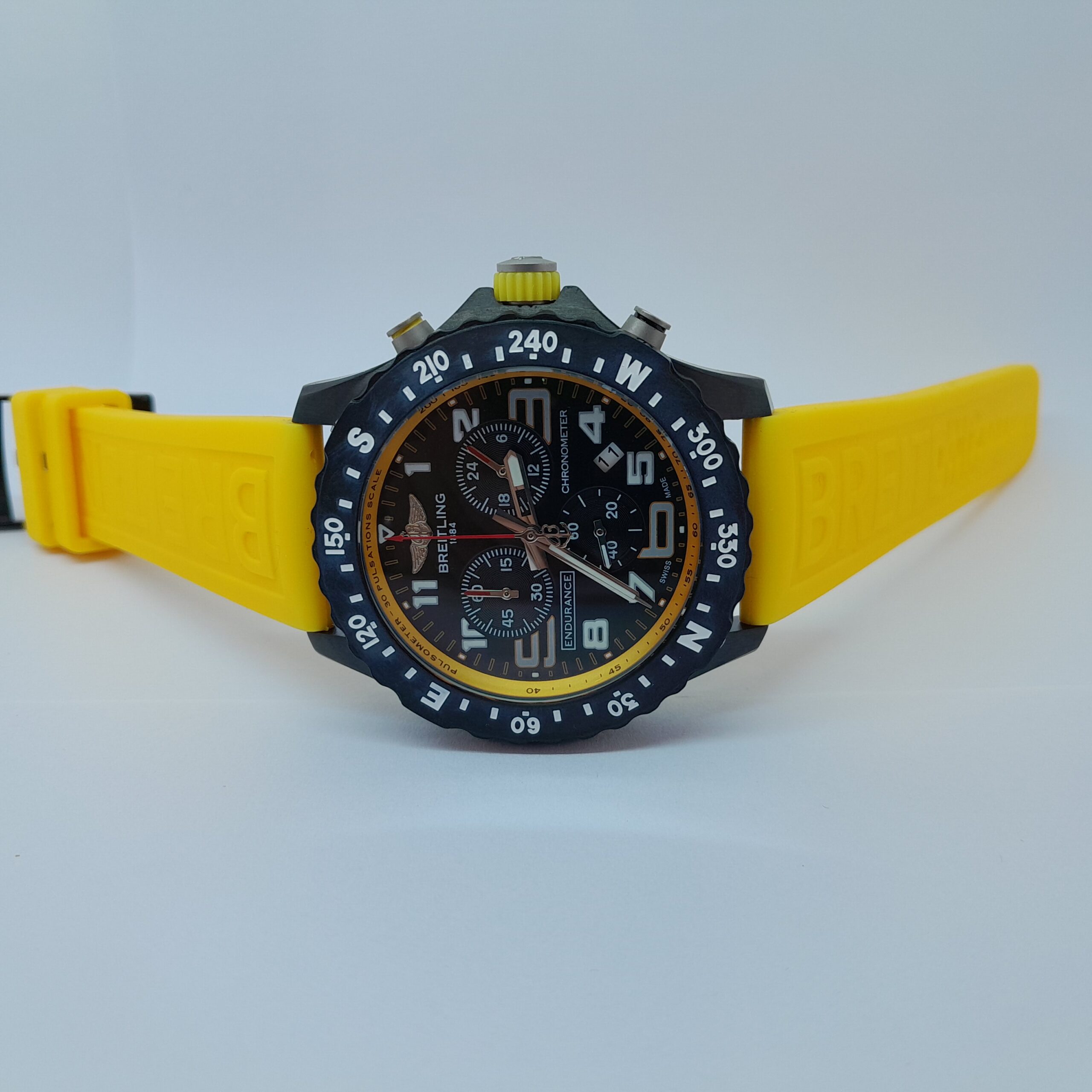 RELOJ BREITLING ENDURANCE PRO CAUCHO AMARILLO CAJA 44 mm PAVONADA TACHYMETER NGR C/AMARILL 3 ESF #BLC CRONO