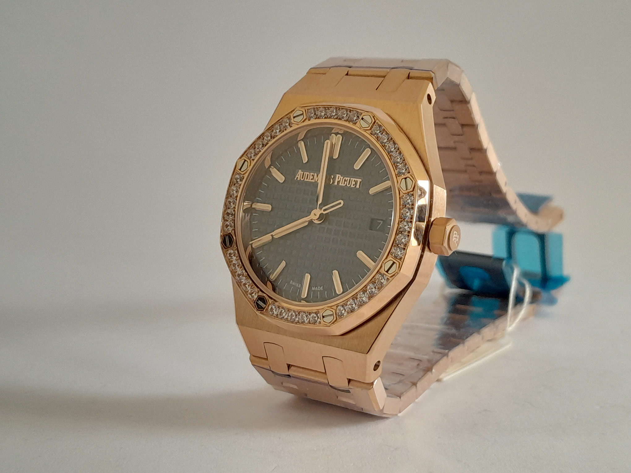 REL SWISS AUDEMARS PIGUET ROYAL ORO ROSA CAJA ORO ROSA BISEL PIEDRAS C/AZUL AUTOMATICO DAMA